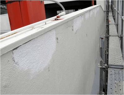 屋根や外壁の塗装をしっかりと行うためには欠損部補修が必要な場合があります。鉄筋の発錆等によって、モルタル、コンクリート、タイル等が膨れや欠落しそうな箇所は、早めの補修が必要となります。放っておくと欠落となり、また雨等が浸入し、発錆が酷くなり建物全体に悪影響を及ぼします。そのような、欠損部分や鉄筋爆裂部分には、強度、接着性がある樹脂モルタルで補修を行います。